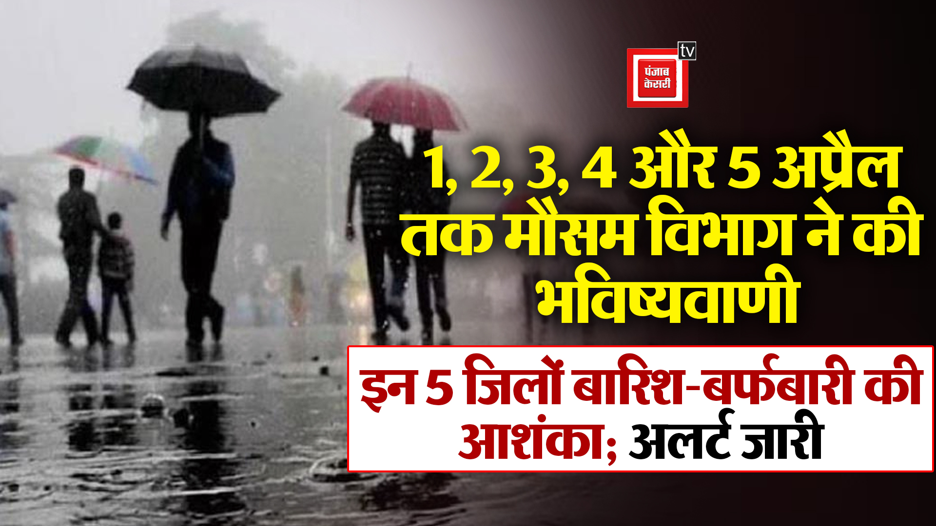 1, 2, 3, 4 और 5 अप्रैल तक मौसम विभाग ने की भविष्यवाणी, इन 5 जिलों बारिश-बर्फबारी की आशंका; अलर्ट जारी