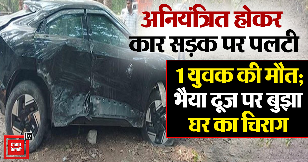 दर्दनाक हादसा ! अनियंत्रित होकर कार सड़क पर पलटी, 1 युवक की मौत; भैया दूज पर बुझा घर का चिराग