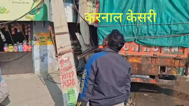 Live करनाल हांसी चौक पर दो ट्रकों की भिड़ंत, दुकान में घुसा ट्रक लाखों का नुकसान, दो खम्बे टूटे